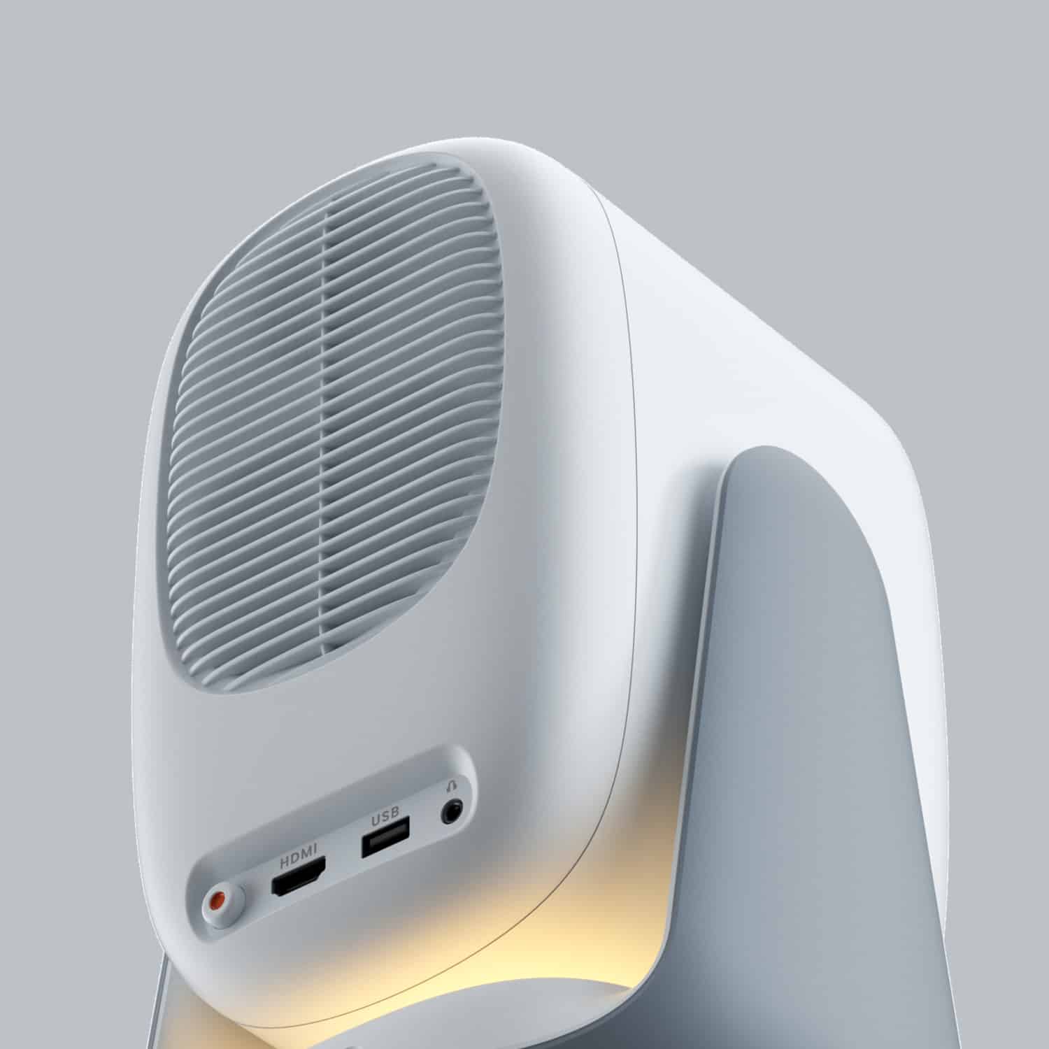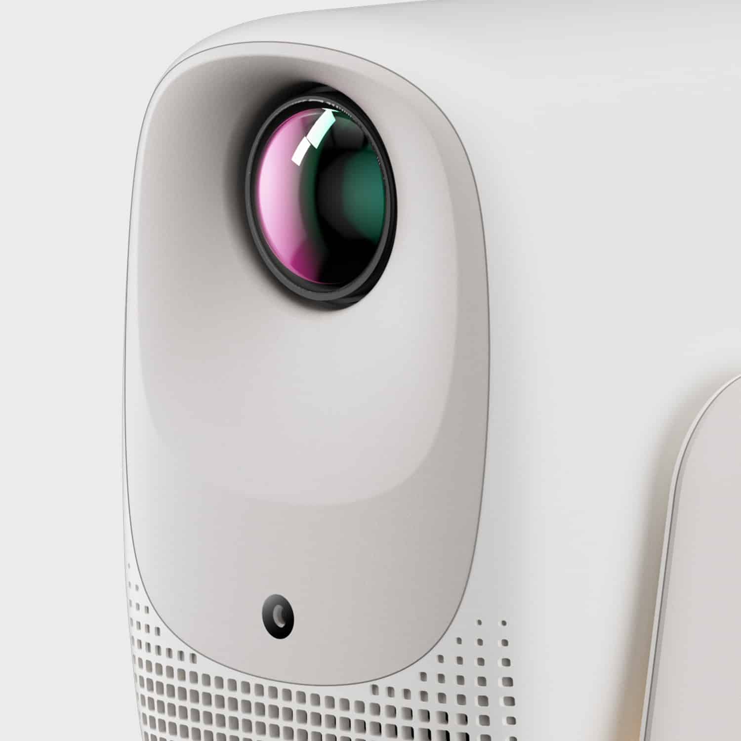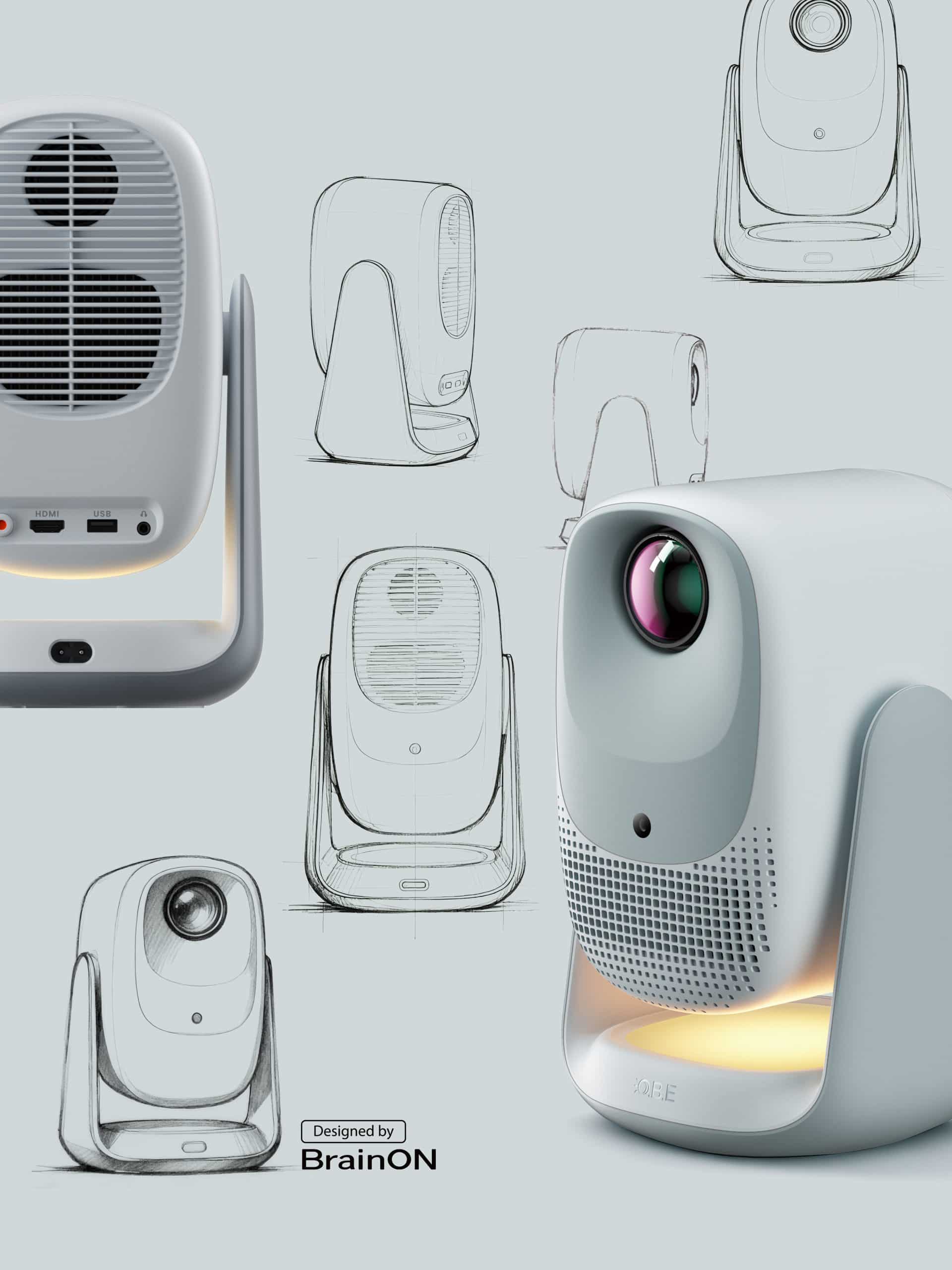 一款定位入门级、价格亲民的卧室投影仪,拥有实用和高性价比的LCD光 机模组和良好的散热风道设计;外观方面采用了全曲面设计,整机浑然一 体,能轻松融入不同装修风格的卧室。首创在产品底座加入氛围灯功能, 对暗光下观影对视力更加友好; 旋转支架将满足用户在不同摆放位置下, 获得更好的投影角度。.